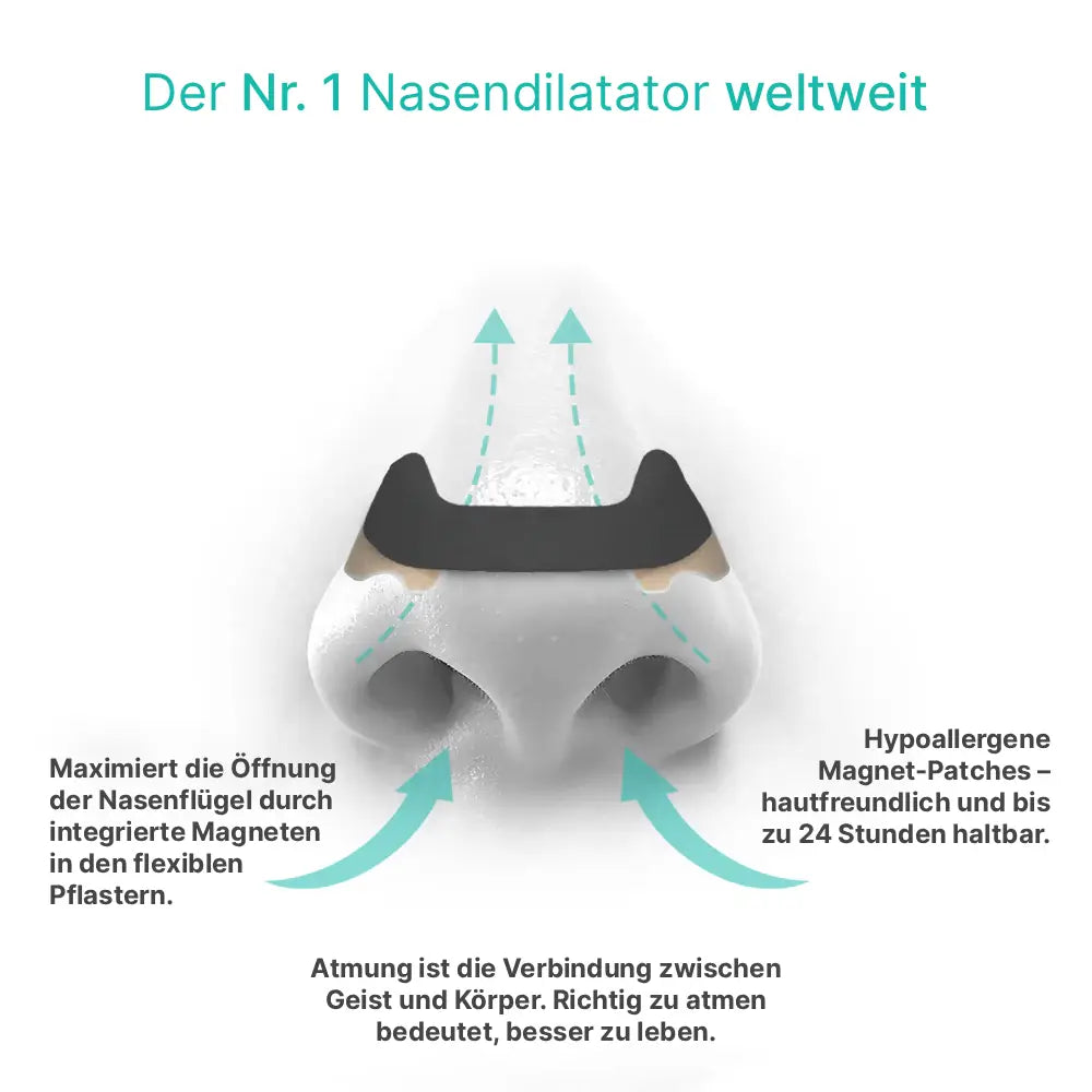 - Öffnet sanft die Nasenwege durch magnetische Spannung, ohne Druck auf Kiefer oder Lippen.